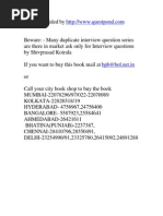 worked. Wherever I have worked, I found out that there is always something to learn. Different companies have different ways of working. The environment and technology always differ from one company to another company. I have never found one companys environment matching with another company. For example, if one company is using documents called requirement documents, then the other company might be using Use Cases and some companies might be using Design Document and so on. Therefore, in my experience, there are always new things to learn in every company and we can always contribute these things in the next company if they help to be more productive. 92. What do you want to be in next 2 years? Answer: I want to be QA Lead in another two years. Why QA Lead? Why not something else? Answer: QA is the only thing I love doing it. I love this job and want to progress in this sector. I want to know how to manage QA process, how to handle different jobs and so on. Since the next step is the QA Lead, that would preferably be one I will targeting for. 93. Why do you want to work for this company? Answer: (This is a tricky question. They want to know what really interests you and you have to be careful when you answer this question. You must admire the line of that company. For example, if you are being interviewed by a pharmaceutical company, then tell them that you are always interested in the medical applications and the better part of your company is that it has exciting products that I am really curious to learn. Thats why I would feel really great if I am given the opportunity to work in your company) 94. Did you get any compliments from your previous employers? What were those situations? Answer: Yes. I did. There were many occasions where I had compliments. For example, I was testing an application going a little bit off my test cases. After I finished executing my test cases, I always think in a way what a real user would possibally click in various parts