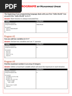 #include<iostream> using namespace std; int main() { int width,height,area,perimeter; cout<<"Enter Width of Rectangle = "; cin>>width; cout<<"Enter Height of Rectangle = "; cin>>height; area=height*width; cout<<"Area of Rectangle ="<<area<<endl; perimeter=2*(height+width); cout<<" Perimeter of rectangle are = "<<perimeter<<endl; return 0; } Program to find the Area of any Triangle having values of three sides #include<iostream> #include<math.h> using namespace std; int main() { float first,second,third; float s,area; cout<<"Enter size of each sides of triangle"<<endl; cout<<"Enter size for First Side ="; cin>>first; cout<<"Enter size for Second Side ="; cin>>second; cout<<"Enter size for Third Side ="; cin>>third;