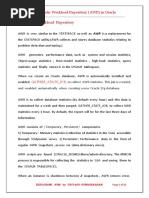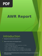 Introduction Differences between AWR and Statspack Workload Repository Reports AWR Snapshots and Baselines Quick Summary on AWR Sections Reading the AWR Report - Header Section: - Cache Sizes - Load Profile - Instance Efficiency - Shared Pool Statistics - Top 5 Timed Foreground Events - Common Waits Events ******* - Time Model Statistics - Operating System Statistics - Foreground Wait Class and Foreground Wait Events - Foreground Wait Class - Foreground Wait Events - Background Wait Events - Service Statistics - SQL Information Section - Generate Execution Plan for given SQL statement - Instance Activity Stats Section - I/O Stats Section - Tablespace IO Stats - File IO Stats - Buffer Pool Statistics Section - Advisory Statistics Section - Instance Recovery Stats - Buffer Pool Advisory - PGA Reports - PGA Aggr Target Stats - PGA Aggr Target Histogram - PGA Memory Advisory