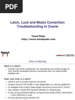 5. Latch Free. Latches are low-level queuing mechanisms (they're accurately referred to as mutual exclusion mechanisms) used to protect shared memory structures in the system global area (SGA). Latches are like locks on memory that are very quickly obtained and released. Latches are used to prevent concurrent access to a shared memory structure. If the latch is not available, a latch free miss is recorded. Most latch problems are related to the failure to use bind variables (library cache latch), redo generation issues (redo allocation latch), buffer cache contention issues (cache buffers LRU chain), and hot blocks in the buffer cache (cache buffers chain). There are also latch waits related to bugs; check MetaLink for bug reports if you suspect this is the case. When latch miss ratios are greater than 0.5 percent, you should investigate the issue. If latch free waits are in the Top 5 Wait Events or high in the complete Wait Events list, look at the latch-specific sections of the report to see which latches are contended for. 6. Enqueue. An enqueue is a lock that protects a shared resource. Locks protect shared resources, such as data in a record, to prevent two people from updating the same data at the same time application, e.g. when a select for update is executed.. An enqueue includes a queuing mechanism, which is FIFO (first in, first out). Note that Oracle's latching mechanism is not FIFO. Enqueue waits usually point to the ST enqueue, the HW enqueue, the TX4 enqueue, and the TM enqueue. The ST enqueue is used for space management and allocation for dictionary-managed tablespaces. Use LMTs, or try to preallocate extents or at least make the next extent larger for problematic dictionarymanaged tablespaces. HW enqueues are used with the high-water mark of a segment; manually allocating the extents can circumvent this