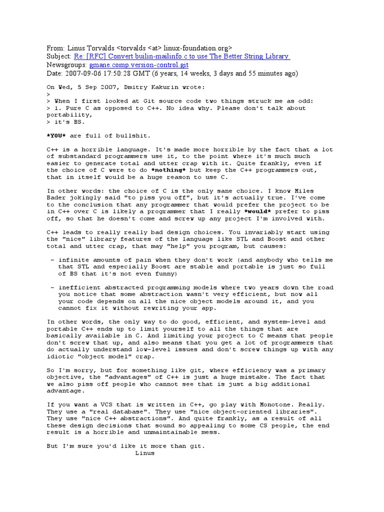 From: Linus Torvalds <torvalds <at> linux-foundation.org> Subject: Re: [RF ! onvert builin-mailinfo.