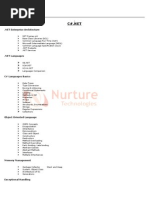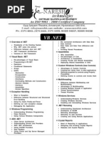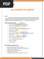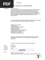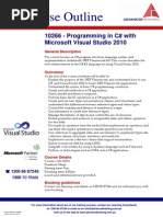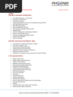 MS.NET Framework Introduction The .NET Framework - an Overview Framework Components Framework Versions Types of Applications which can be developed using MS.NET MS.NET Base Class Library MS.NET Namespaces MSIL / Metadata and PE files. The Common Language Runtime (CLR) Managed Code MS.NET Memory Management / Garbage Collection Common Type System (CTS) Common Language Specification (CLS) Types of JIT Compilers Security Manager Developing Console Application Introduction to Project and Solution in Studio Entry point method - Main. Compiling and Building Projects Using Command Line Arguments Importance of Exit code of an application Different valid forms of Main Compiling a C# program using commandline utility CSC.EXE Language Basics Why Datatypes Global, Stack and Heap Memory Common Type System Reference Type and Value Type Datatypes & Variables Declaration Implicit and Explicit Casting Checked and Unchecked Blocks Overflow Checks Casting between other datatypes Boxing and Unboxing Enum and Constant Operators Control Statements Working with Arrays