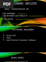 Huawei Router Basic Configuration Command [Liufei]display version; display version information [Liufei]display current-configuration; display current configuration [Liufei]display interfaces; display interface information; [Liufei]display IP route; s ow t at t e routing information; [Liufei]sysname lf!"#; c ange t e ost name [Liufei]super passwrod !"#$%&; setup password; [Liufei]interface serial'; into t e interface; [Liufei-serial']ip address (ip) (mas*+mas*,len) IP address configured ports; [Liufei-serial']undo s utdown; activation port; [Liufei]lin*-protocol H-LC; .inds H-LC protocol; [Liufei]user-interface vty '$ [Liufei-ui-vty'-$]aut entication-mode password [Liufei-ui-vty'-$]set aut entication-mode password simple """ [Liufei-ui-vty'-$]user privilege level # [Liufei-ui-vty'-$]/uit [Liufei]de.ugging H-LC all serial'; to display all of t e information; [Liufei]de.ugging H-LC event serial'; de.ug event information [Liufei]de.ugging H-LC pac*et serial'; s ow t e pac*age information
