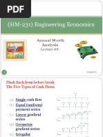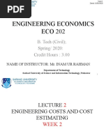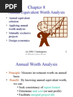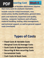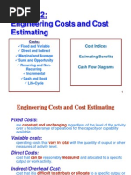 Cash Costs A cash cost requires the cash transaction of dollars out of one persons pocket into the pocket of someone else. i.e. you are incurring a cash cost or cash flow. Cash costs and cash flows are the basis for engineering economic analysis Book Costs They are cost effects from past decisions that are recorded in in the books (accounting books). They are costs reflected in the accounting system only. Dont represent cash flows Not included in the engineering economic analysis Example: You might use Edmonds Used Car Guide to conclude the book value of your car is $6,000. The book value can be thought of as the book cost. If you actually sell the car to a friend for $5,500, then the cash cost to your friend is $5,500.