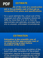 Used during the detailed design and contract bidding phases Made from detailed quantitative models, blueprints, product specification sheets, and vendor quotes Accuracy is -3% to +5%