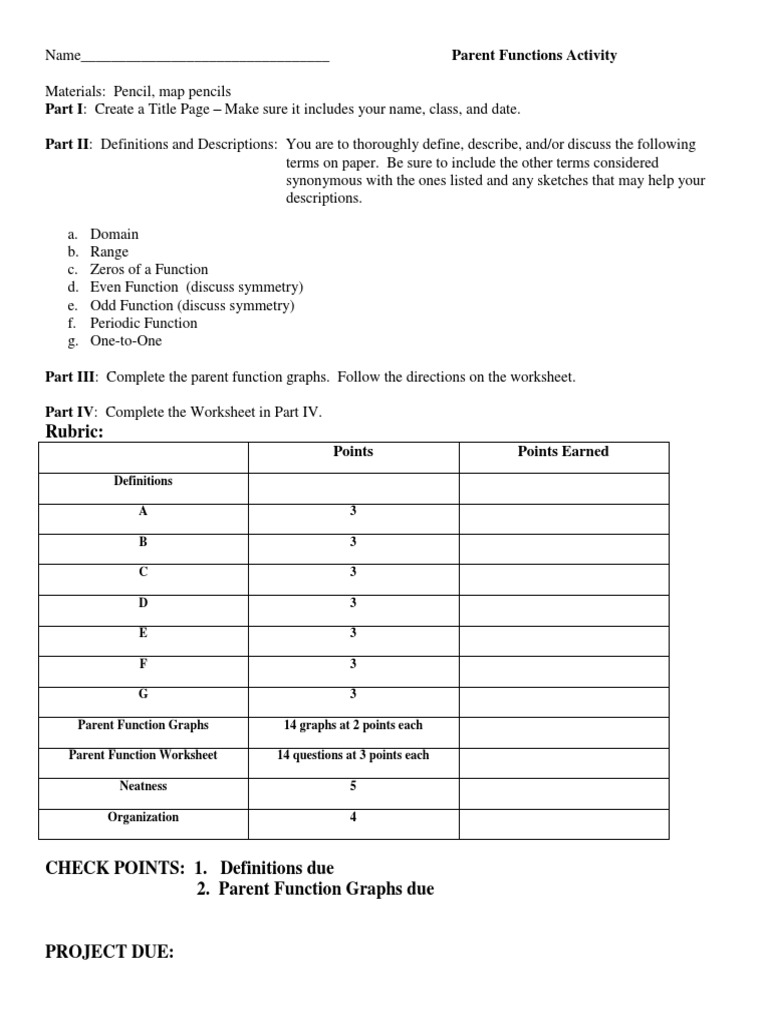 Part III: Complete the parent function graphs. Follow the directions on the worksheet.