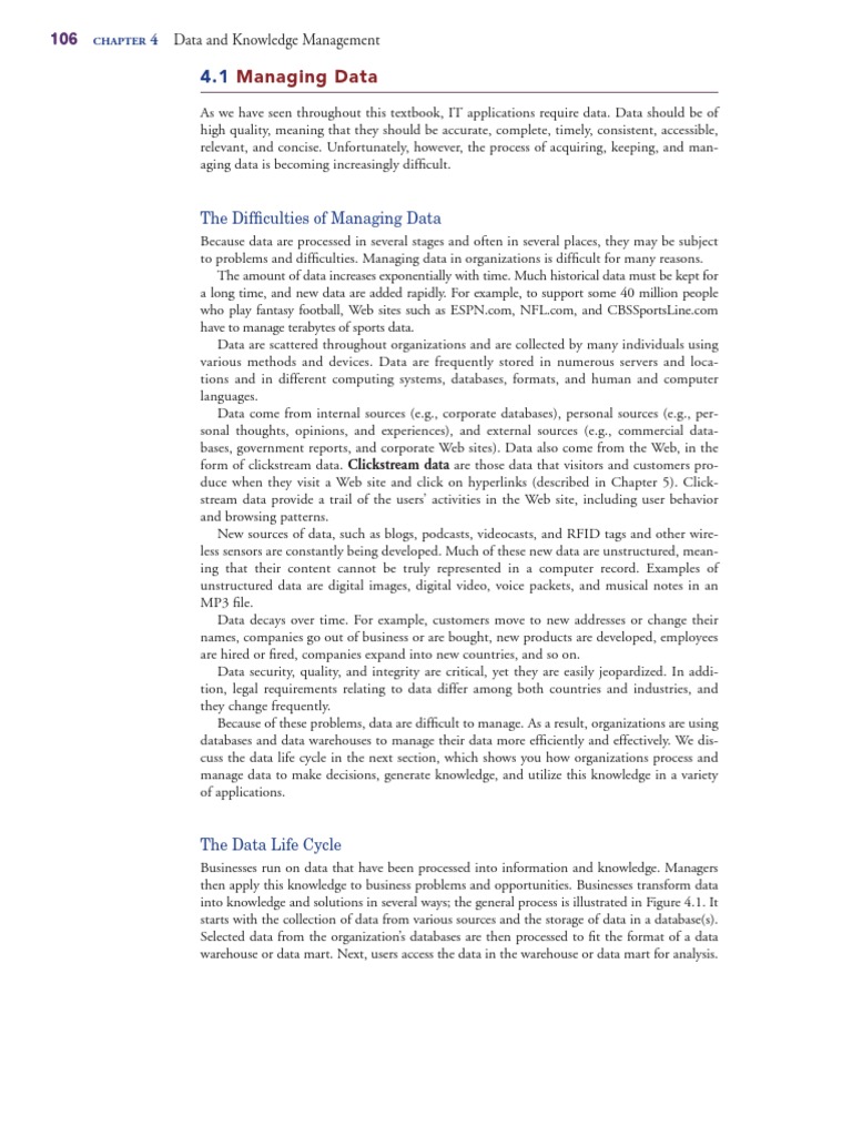 Because of these problems, data are difcult to manage. As a result, organizations are using