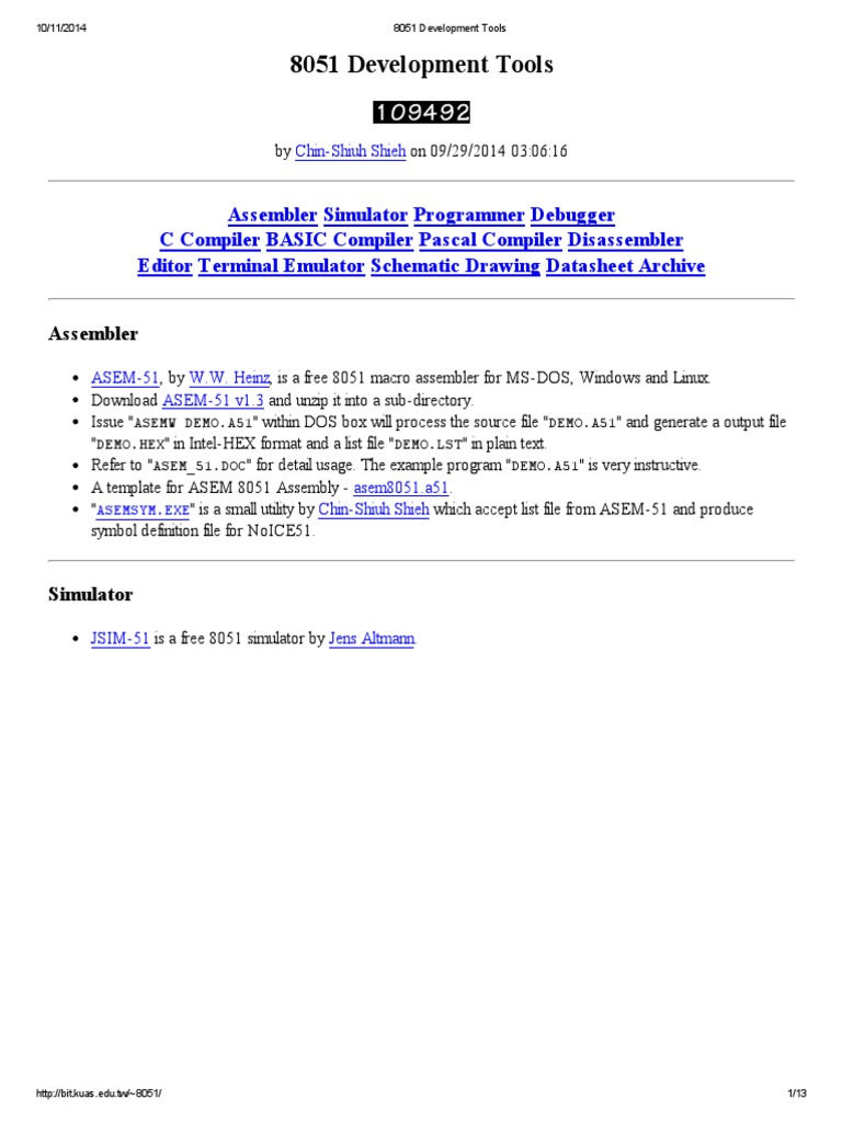 ASEM-51, SDCC, TS Control Emulator 8051, and JSIM-51 Simulator.