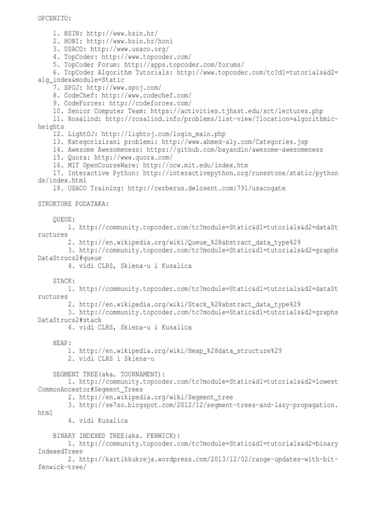 1. http://community.topcoder.com/tc?module=Static&d1=tutorials&d2=dataSt