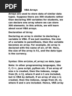 This function copies SourceArray to DestinationArray. Unfortunately, VBA does not allow you to copy one array to another with a simple assignment statement. You must copy the array