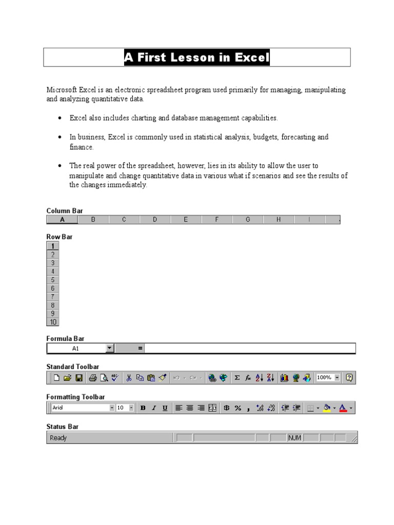 1. Start Excel so that you have a new workbook. Save the workbook as Excel Lesson One