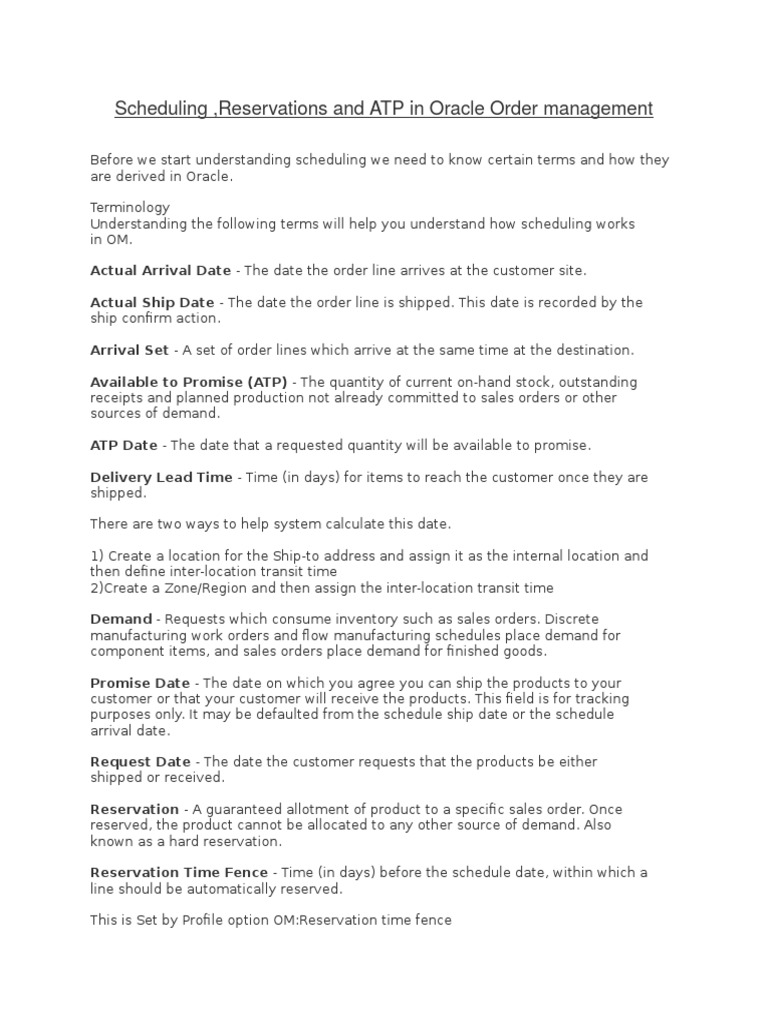 Scheduling ,Reservations and ATP in Oracle Order management