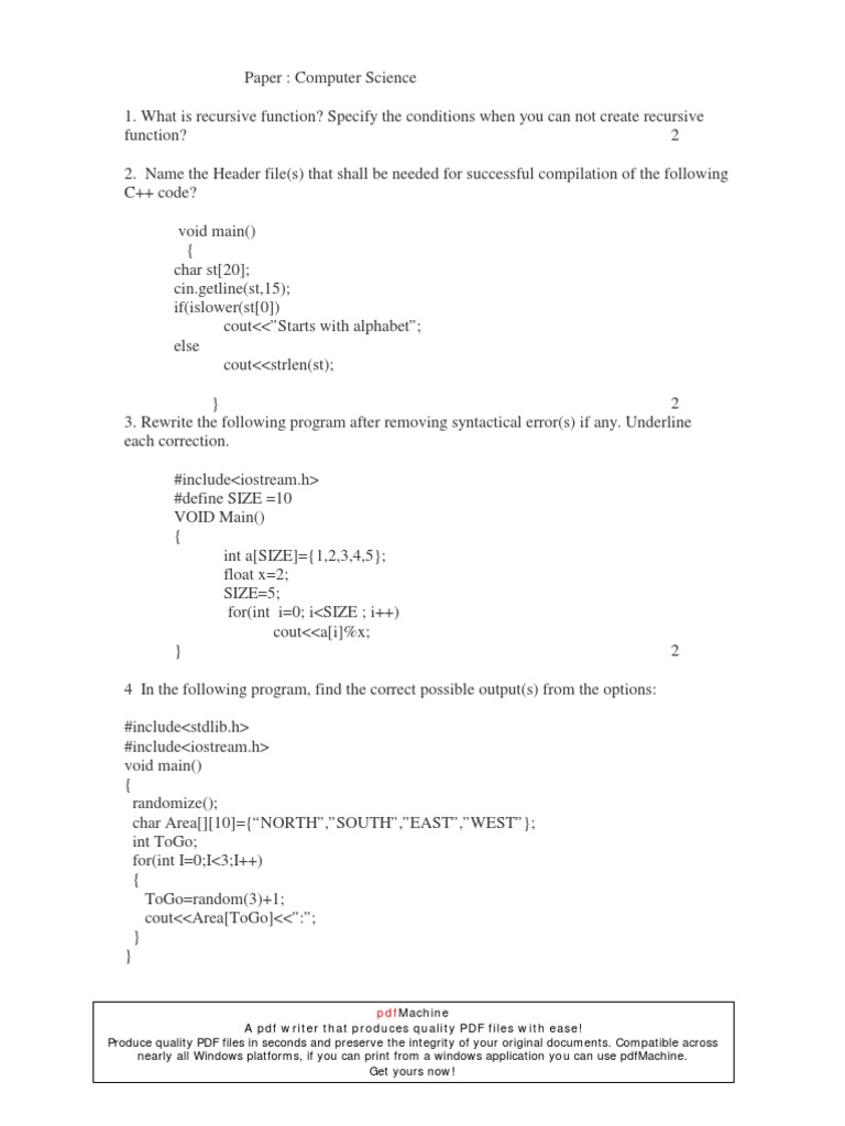 1. What is recursive function? Specify the conditions when you can not create recursive