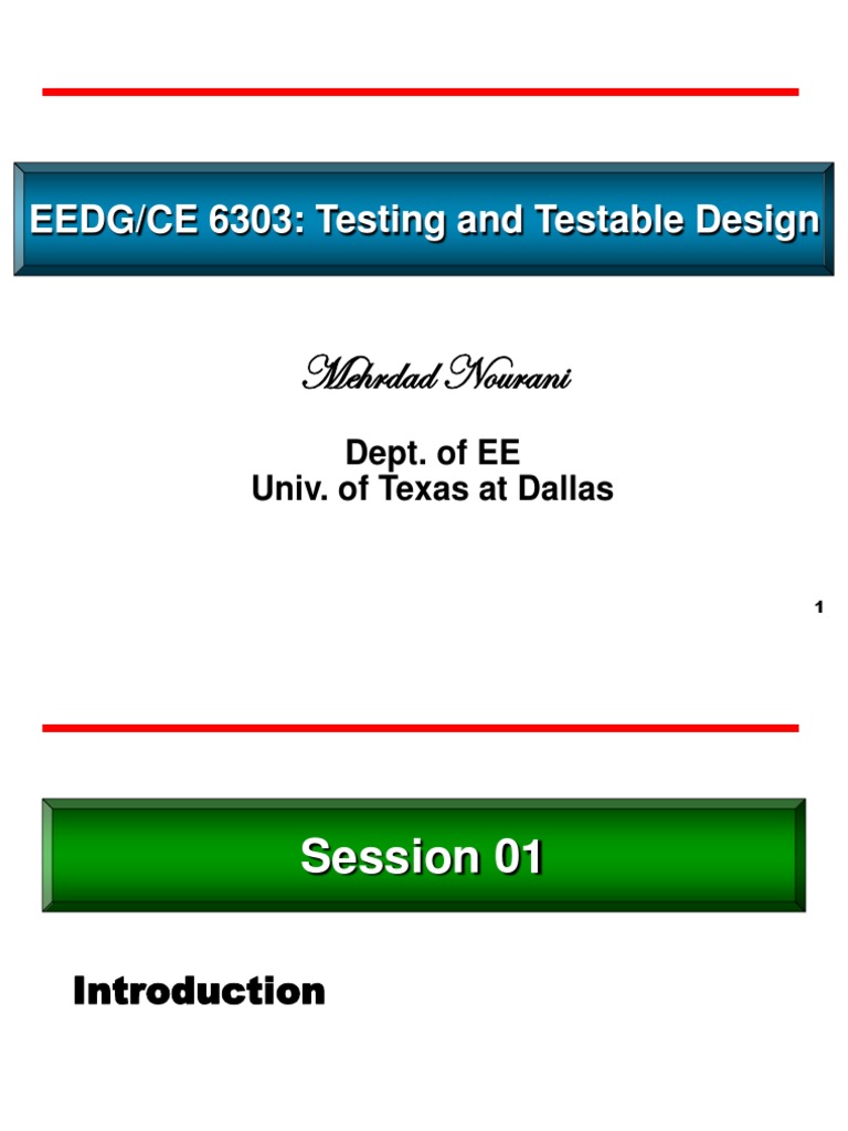 EEDG/CE 6303: Testing and Testable Design