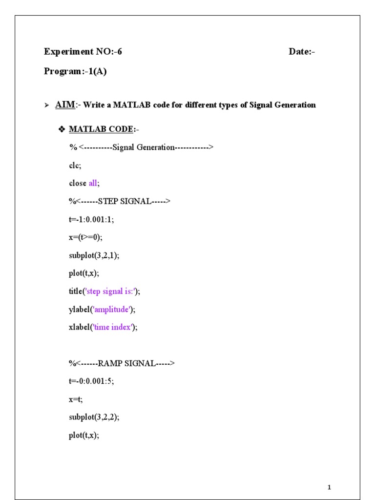 AIM:- Write a MATLAB code for different types of Signal Generation