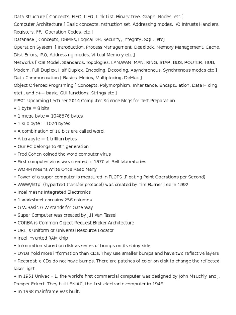 PPSC Upcoming Lecturer 2014 Computer Science Mcqs for Test Preparation