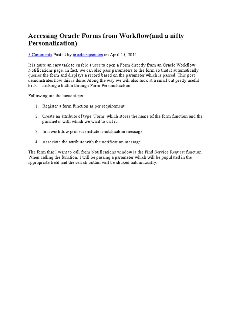 It is quite an easy task to enable a user to open a Form directly from an Oracle Workflow