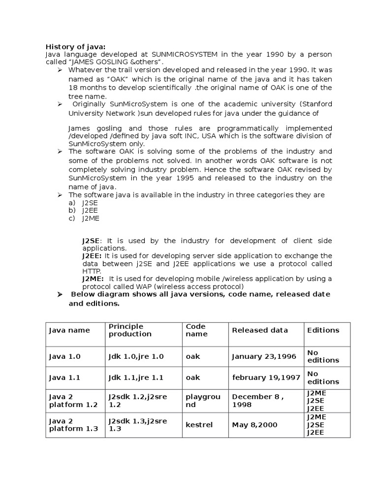 SunMicroSystem in the year 1995 and released to the industry on the