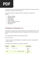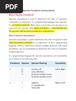 ThispagelistsCoperatorsinorderofprecedence(highesttolowest).Theirassociativityindicatesinwhatorderoperatorsof