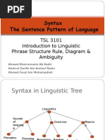 syntax, semantics, phonology and morphology. The sentence is represented as a tree having