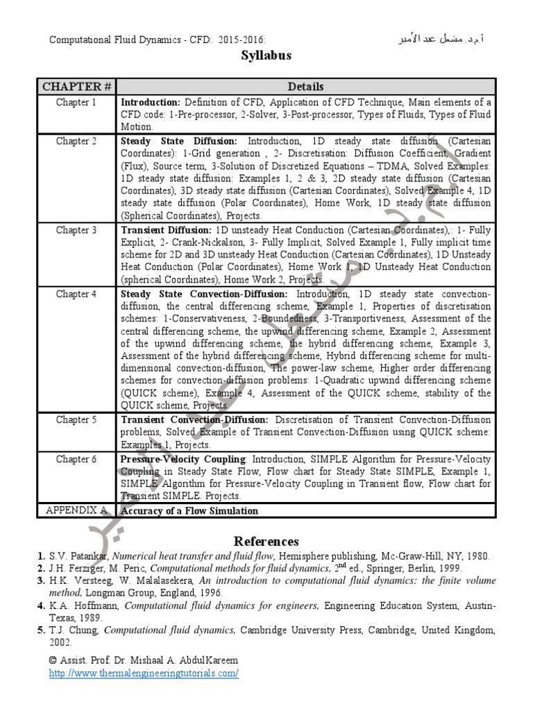 3. H.K. Versteeg, W. Malalasekera, An introduction to computational fluid dynamics: the finite volume
