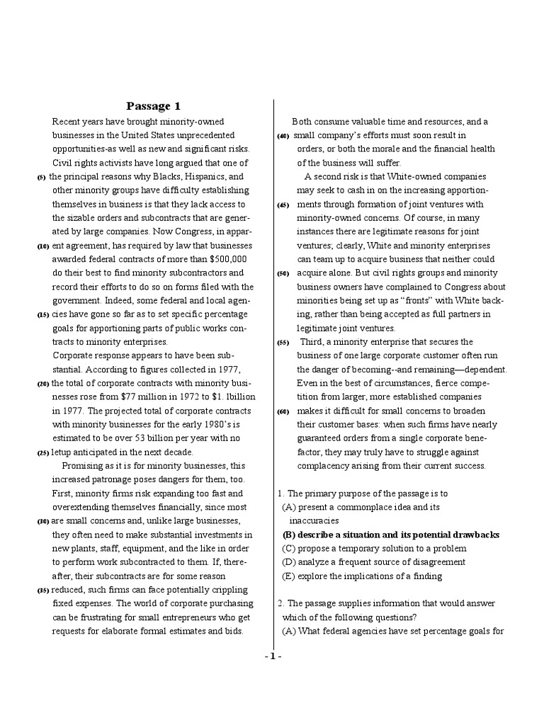 (B) To which government agencies must 5. The author implies that a minority-owned concern