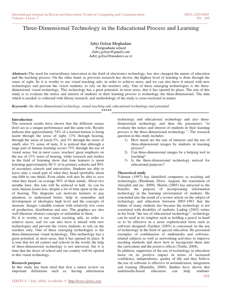 technologies and prevent the vision students, to rely on the teachers only. One of these emerging technologies is the three-