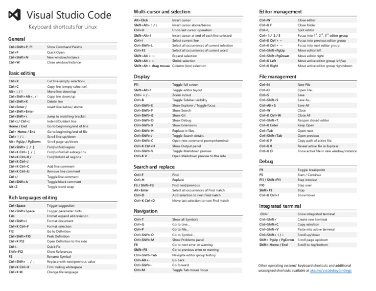 Ctrl+Shift+P, F1 Show Command Palette Ctrl+Shift+L Select all occurrences of current selection Ctrl+K Ctrl + Focus into next editor group