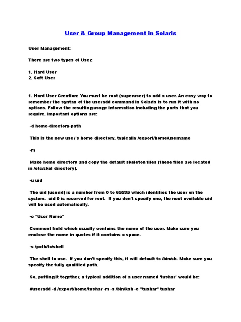 #useradd -d /export/home/tushar -m -s /bin/ksh -c "tushar" tushar