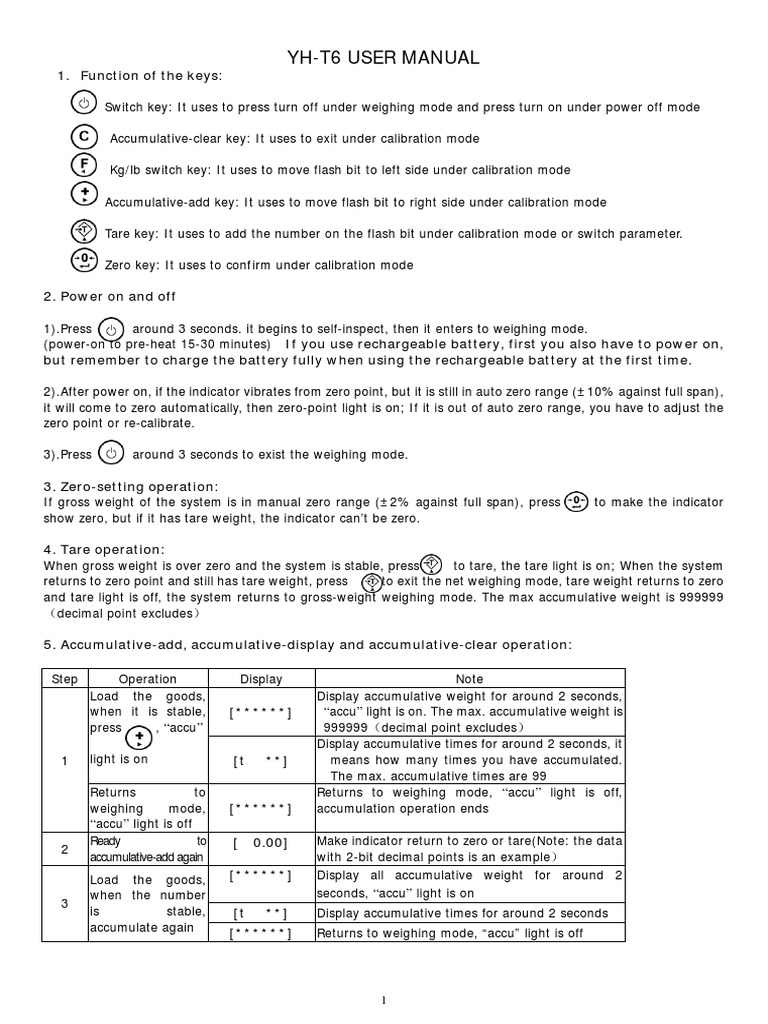 and tare light is off, the system returns to gross-weight weighing mode. The max accumulative weight is 999999