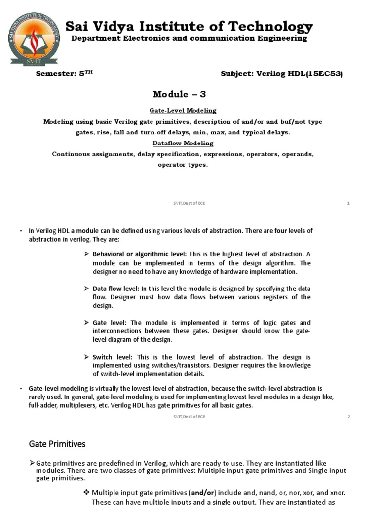 Semester: 5TH Subject: Verilog HDL(15EC53)