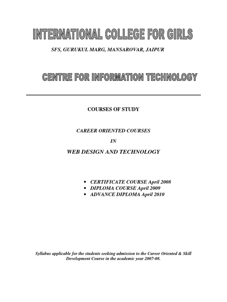 CERTIFICATE COURSE IN WEB DESIGN AND TECHNOLOGY