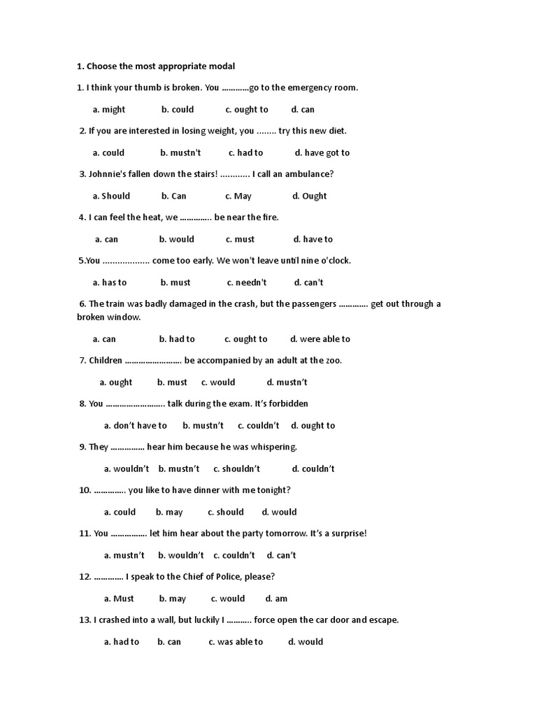 2. Rewrite the following sentences using modals. Do not change the meaning of the original