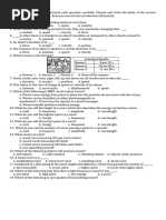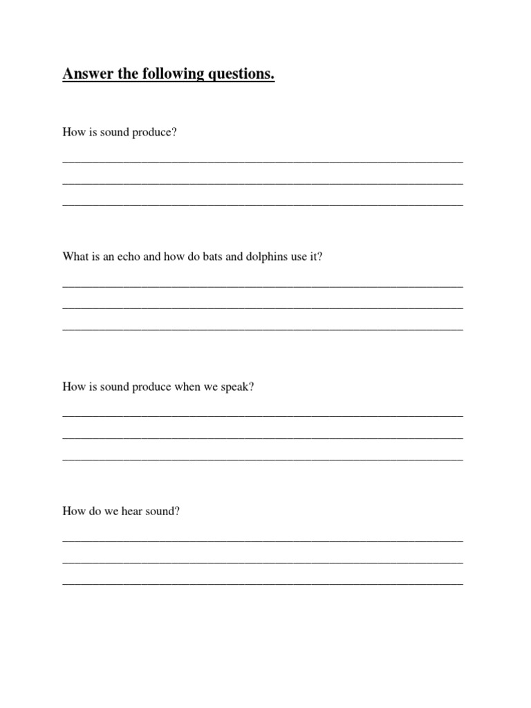 The document contains questions about sound, electricity, stars, planets, and other space-related topics. For sound, it asks how sound is produced, what an echo is, and how we hear sound. For electricity, it asks about static electricity, electrical charges, and the difference between conductors and insulators. It also contains multiple choice questions about these topics. For space, it asks about stars, asteroids, gravity, the names of planets in our solar system, and characteristics of individual planets. It asks the reader to fill in blanks with the names of celestial objects based on clues.