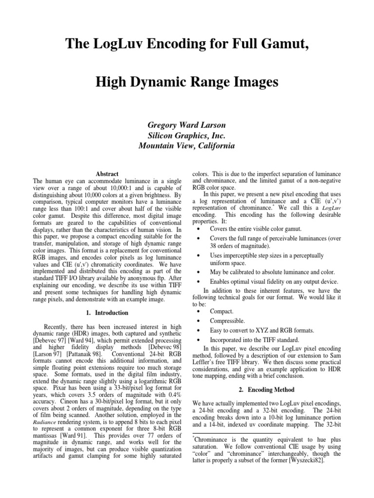 high contrast images,” Proceedings of Graphics Interface Links to Sam Leffler’s TIFF library, example LogLuv
