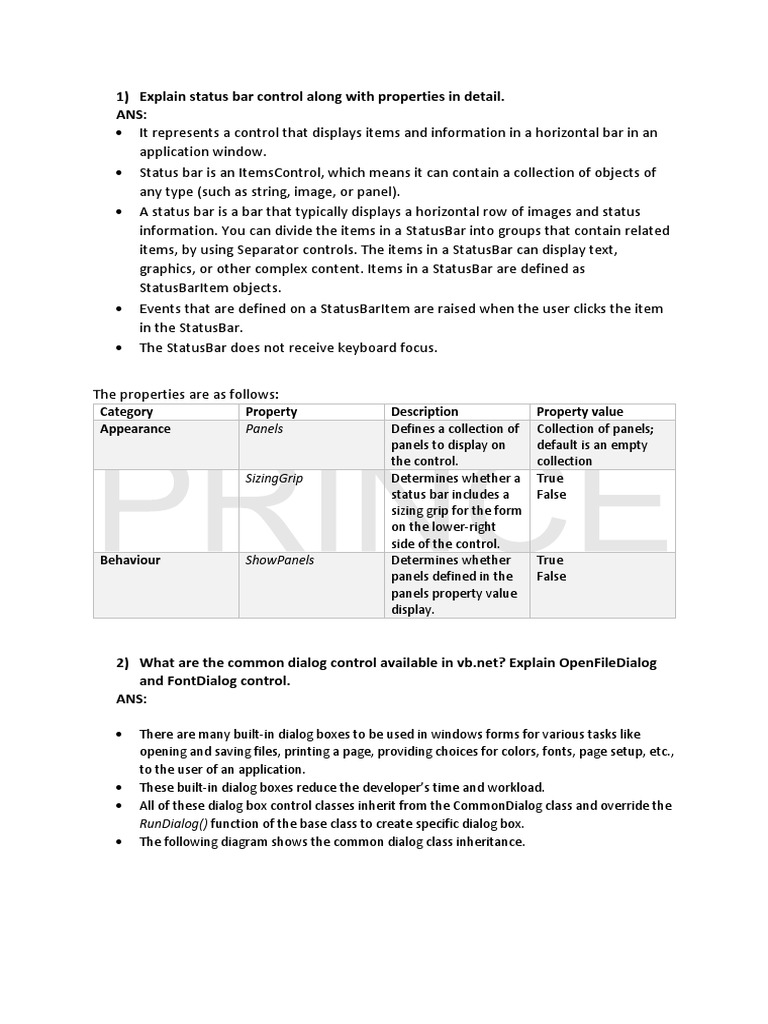 2) What are the common dialog control available in vb.net? Explain OpenFileDialog