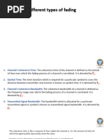 • Slow fading arises when the coherence time of the channel is large relative to the delay