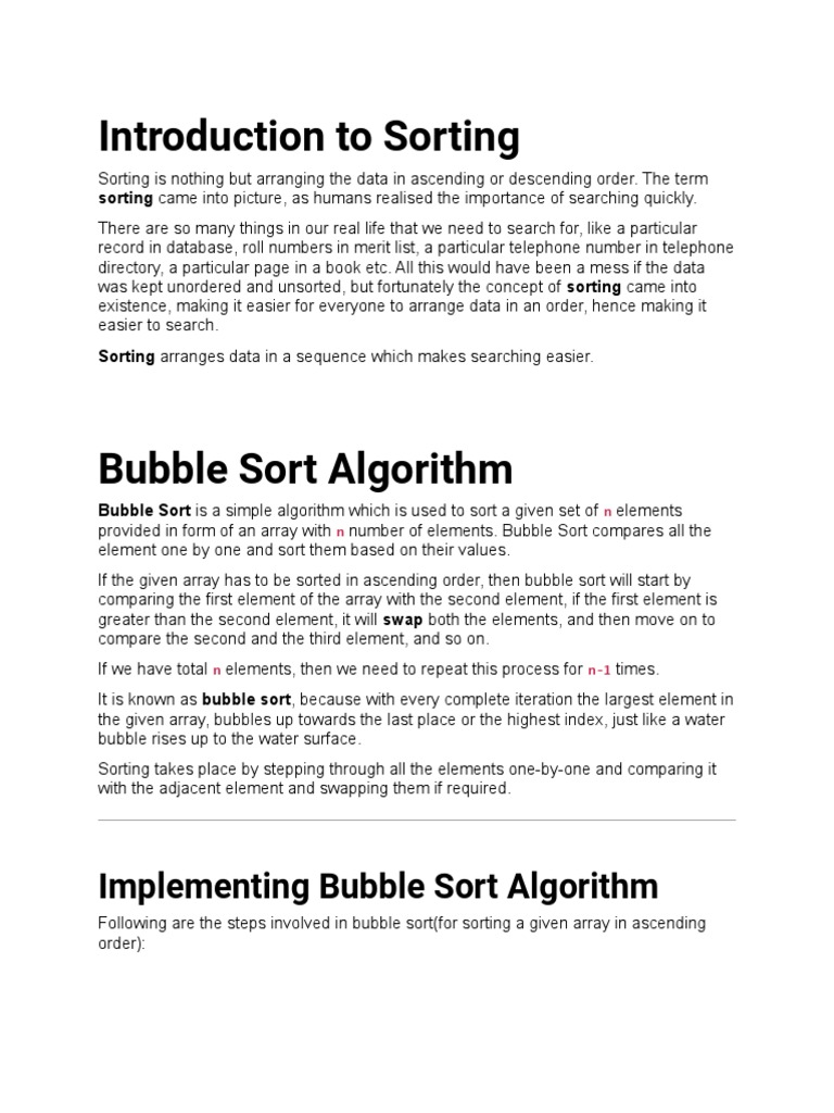 provided in form of an array with n number of elements. Bubble Sort compares all the