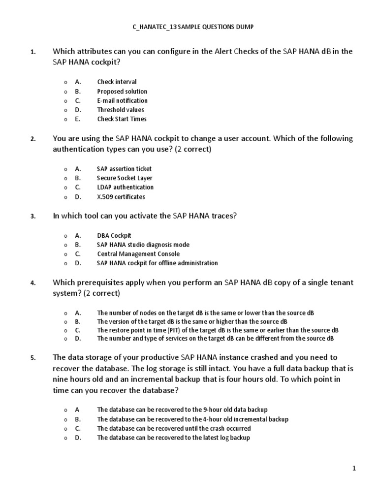 C_HANATEC_13 SAMPLE QUESTIONS DUMP