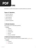 Operators are special symbols that perform specific operations on one, two, or three operands, and then