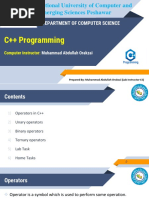 The increment/decrement operators can be applied before (prefix) or after (postfix) the operand