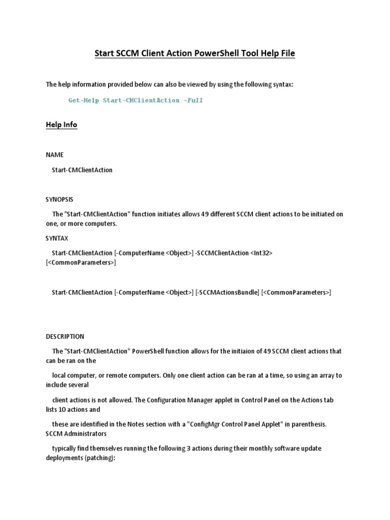 Start SCCM Client Action PowerShell Tool Help File
