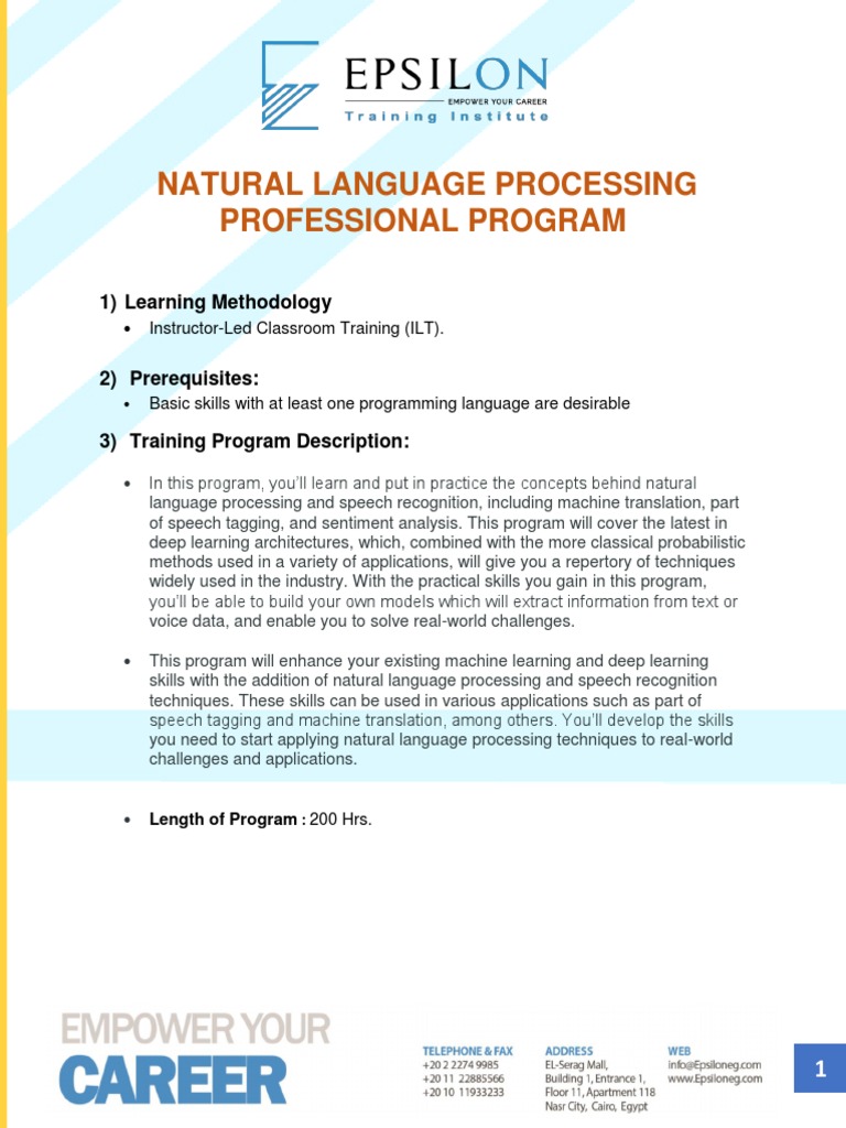 of speech tagging, and sentiment analysis. This program will cover the latest in