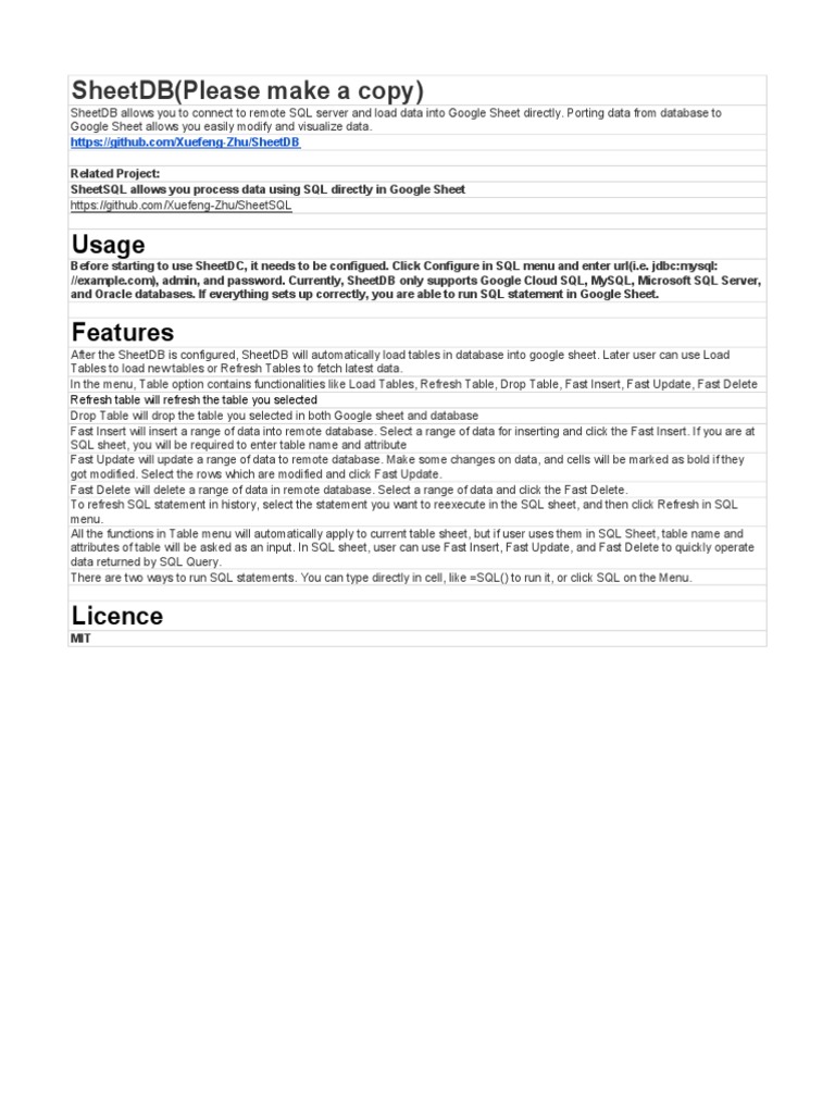and Oracle databases. If everything sets up correctly, you are able to run SQL statement in Google Sheet.