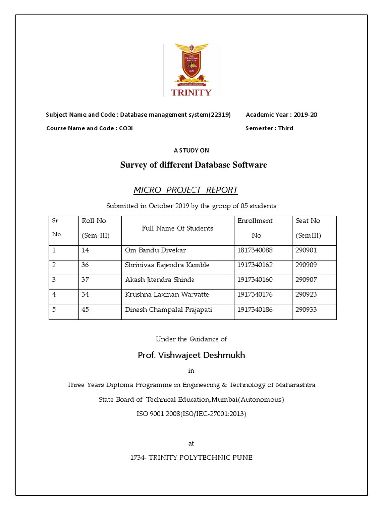 completed the Micro Project Satisfactorily in Subject DBMS(22319) In the Academic Year