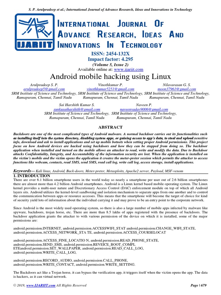 focus on how Android devices are hacked using backdoors and how they can be stopped from doing so. The backdoor