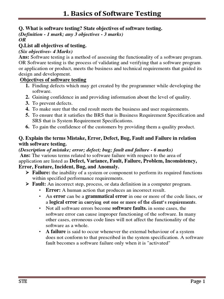 1. Basics of Software Testing