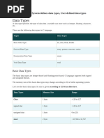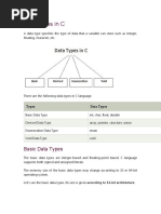 float A single precision floating 4 bytes %f –3.4*1038 to +3.4*1038