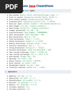 THE JAVA LANGUAGE CHEAT SHEET IF STATEMENTS: CLASS/OBJECT TYPES: