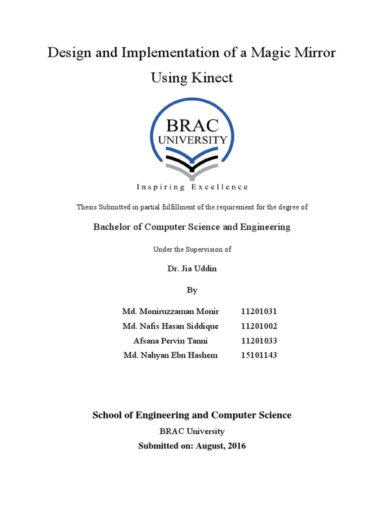 [3] A.B. Habib, A. Asad, W.B. Omar, “Magic Mirror Using Kinect,” BRAC